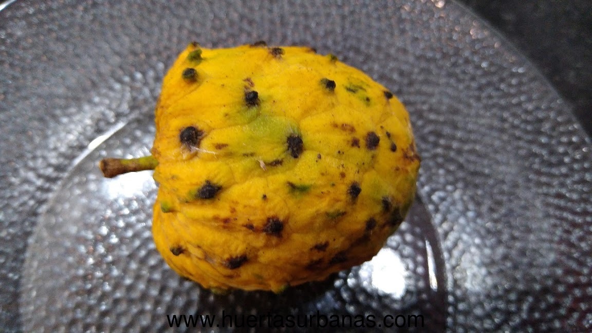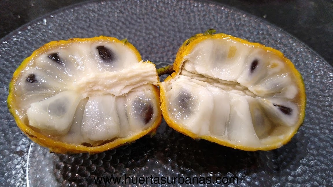 V našich podmínkách dorůstá do výšky kolem dvou metrů, při pěstování v květináči si zachovává kompaktní tvar a dobře reaguje na tvarování. Zaujme elegantními eliptickými listy s lesklým povrchem a krémově zbarvenými květy, které se objevují v paždí listů. Plody jsou nápadně podlouhlé, žluté s tmavými skvrnami, dorůstají délky až 7 cm a mají hrubou, silně aromatickou slupku. Dužina je sladká, šťavnatá a výborně chutná — ideální ke konzumaci čerstvá.
