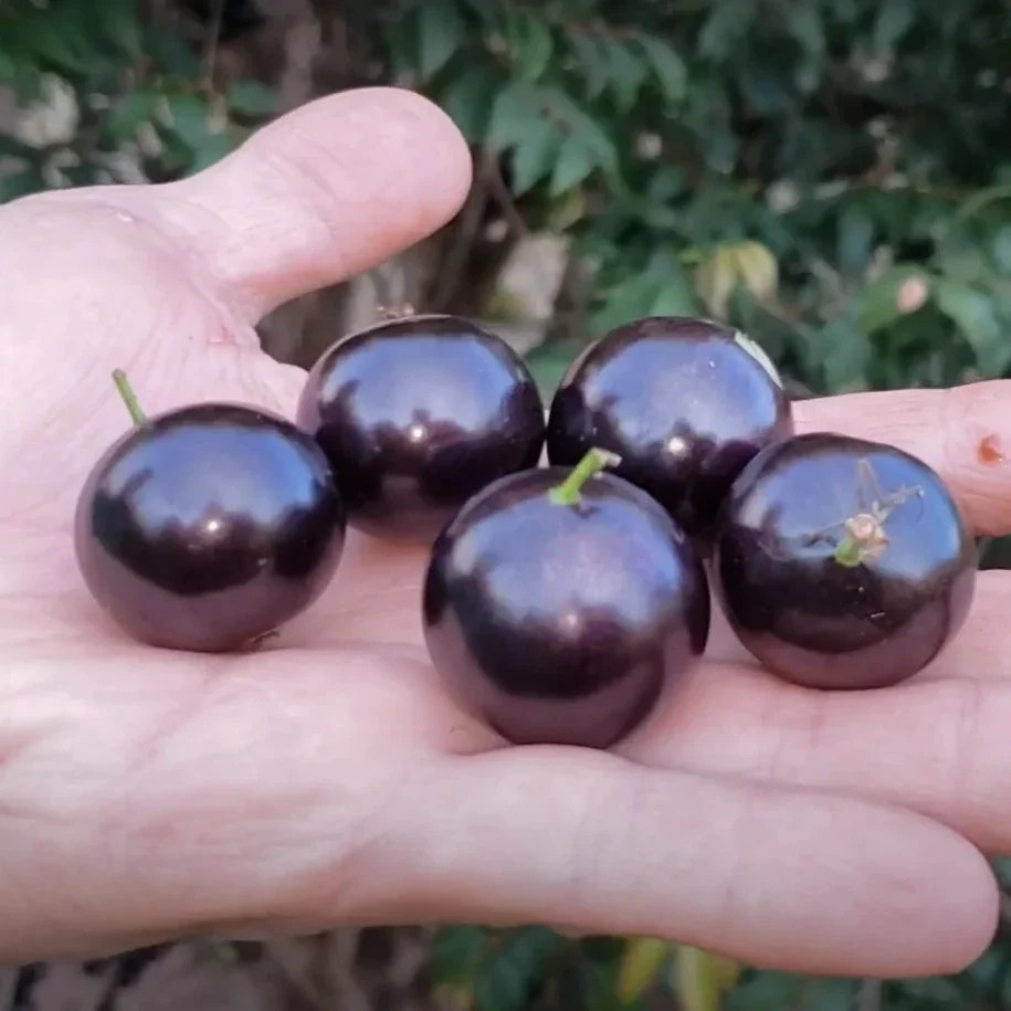 The fruits are spherical, smooth, shiny and deep black, with a diameter of over 2 cm. Inside is a juicy, sweet pulp that surprises with its unmistakable flavor profile with a delicate coffee aroma - hence the name Cabinho Café.